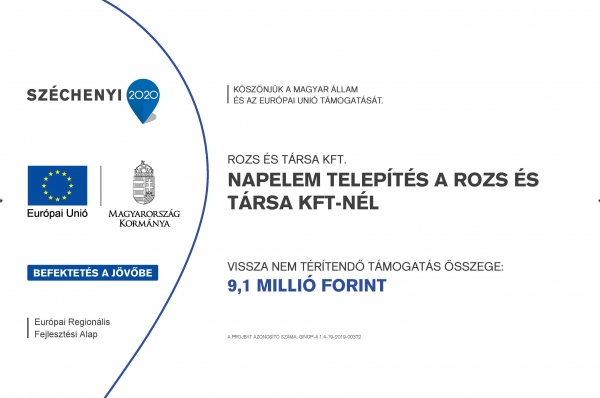 Projekt cĂme: âNapelem telepĂtĂŠs a Rozs ĂŠs TĂĄrsa Kft-nĂŠlâ.